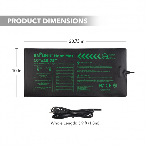 The BN-LINK Durable Seedling Heating Mats feature multiple layers of flexible waterproof PVC that encase heat-conducting wire. The outer layer is sealed to protect the internal heating elements, making the mat perfect for a variety of applications, such as seeding, germination, home-brewing, and pet enclosure terrariums, including those used for reptiles, rodents, and arachnids.